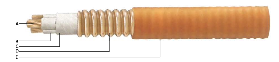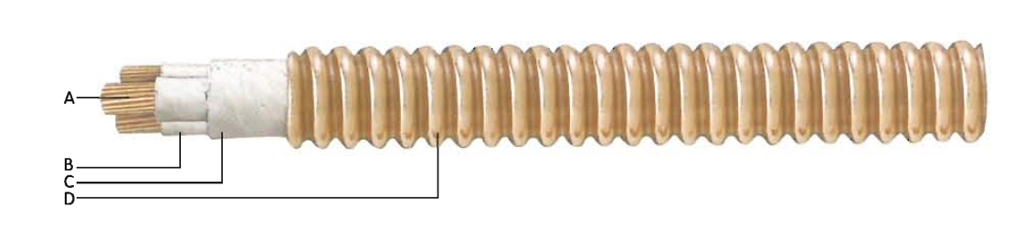 Modelo de cables ignífugos flexibles con funda de cobre arrugada
